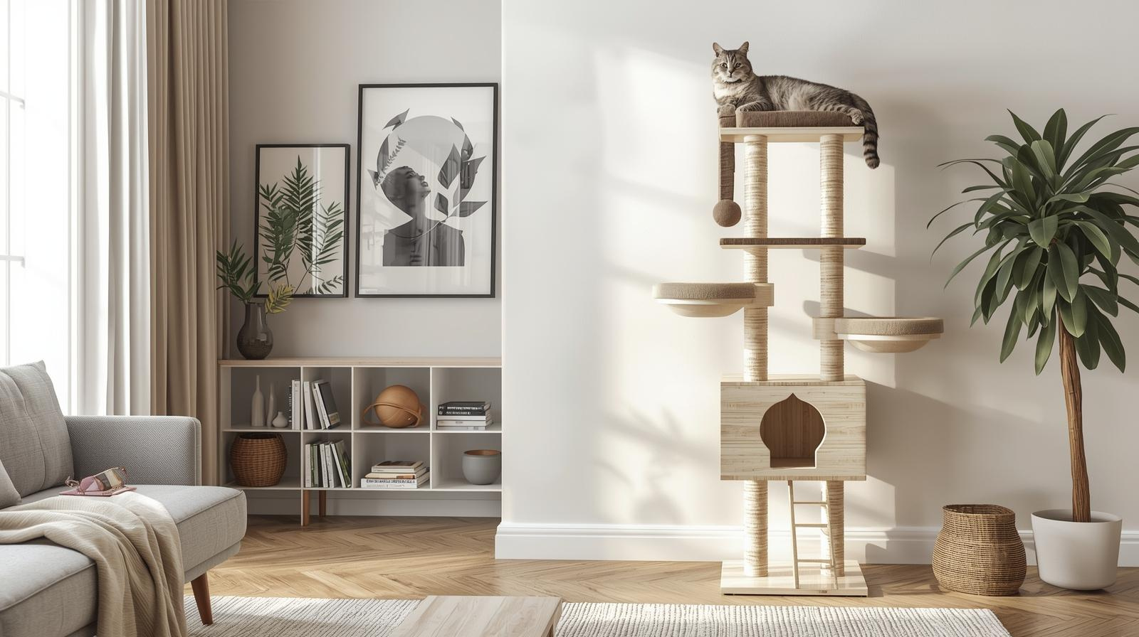 What to look for: Neutral colors (gray, white, natural wood), clean lines, multiple levels, scratching posts, and stability (nobody wants a toppling tower).